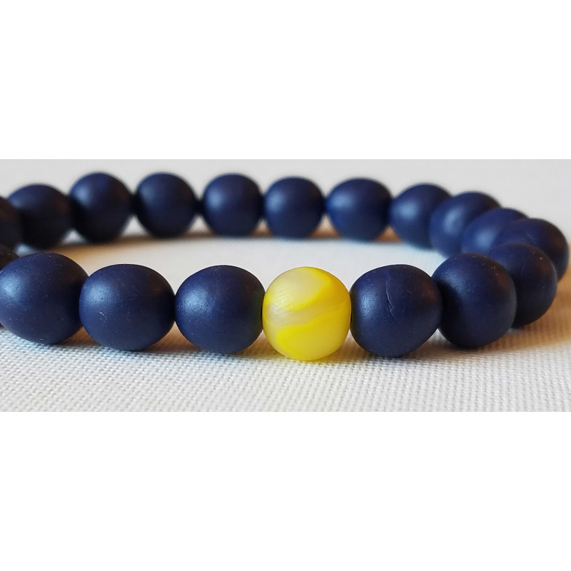 Perles boules bleu et 1 jaune