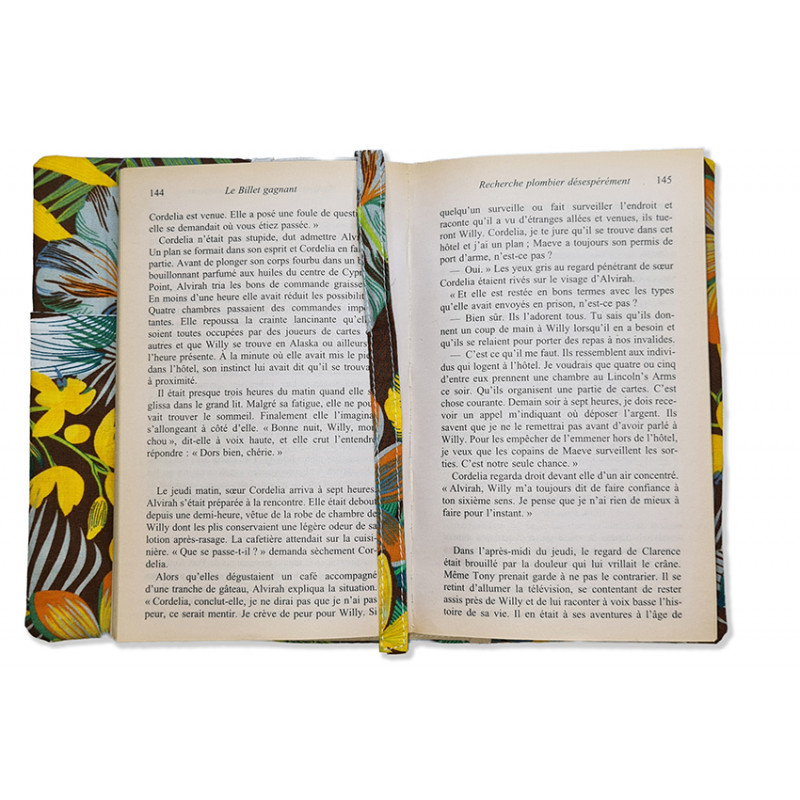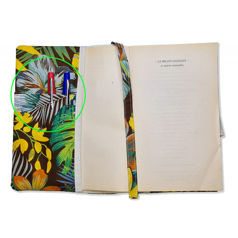 Couvre-livre de poche avec son marque page cousu pour éviter de le perdre.