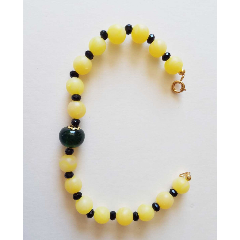 Montées avec une perle en verre verte et des perles facettées noires