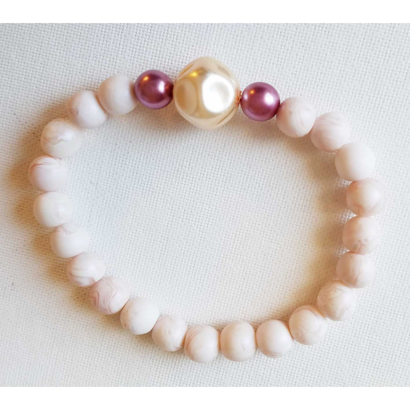 Avec en décoration 2 perles rose synthétique et blanche