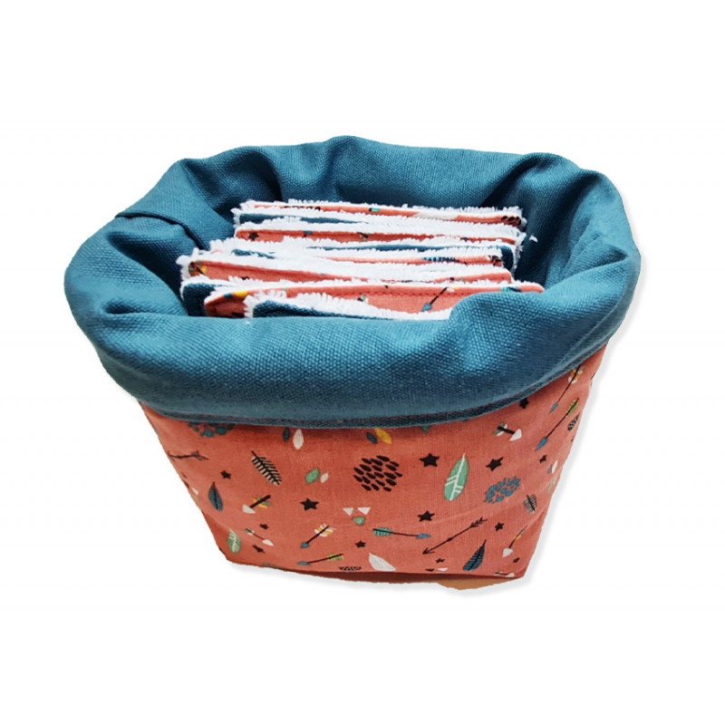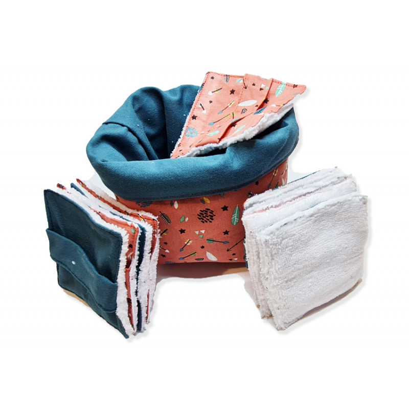 Avec son panier réversible assorti comprenant 10 lingettes démaquillantes réutilisables et lavables