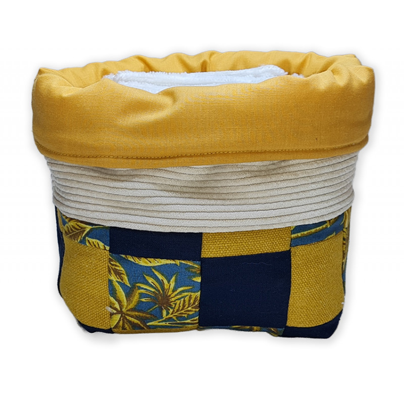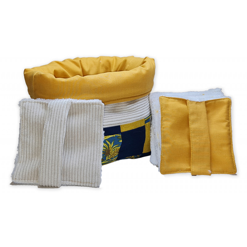 Avec son panier réversible en patchwork sur fond blanc comprenant 10 lingettes démaquillantes