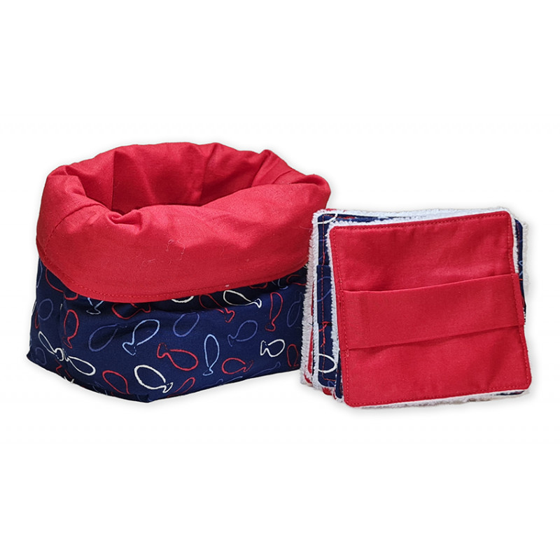 Avec son panier réversible assorti comprenant 10 lingettes démaquillantes réutilisables et lavables