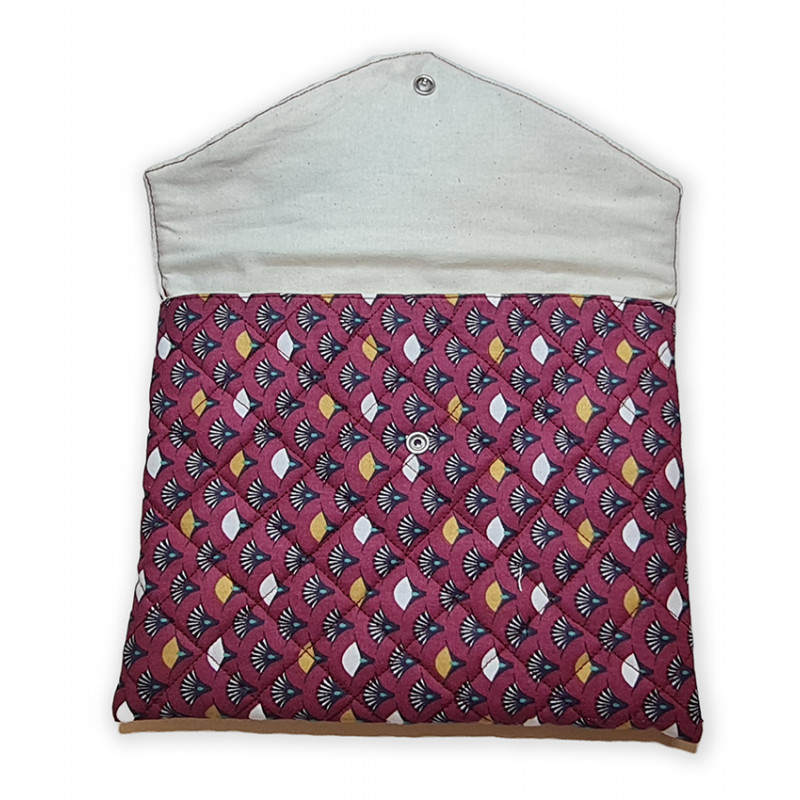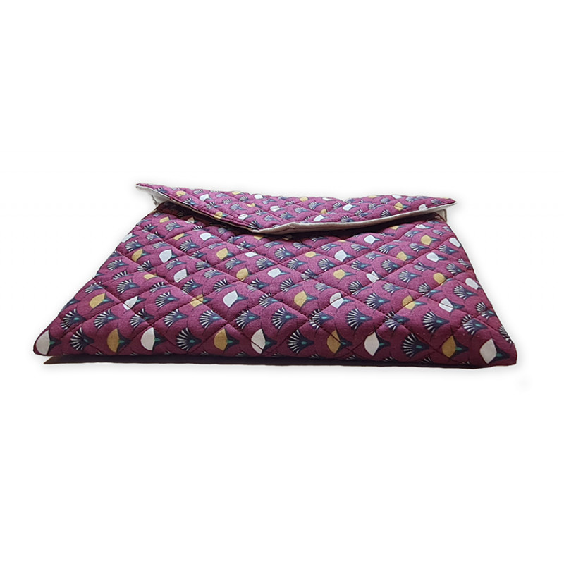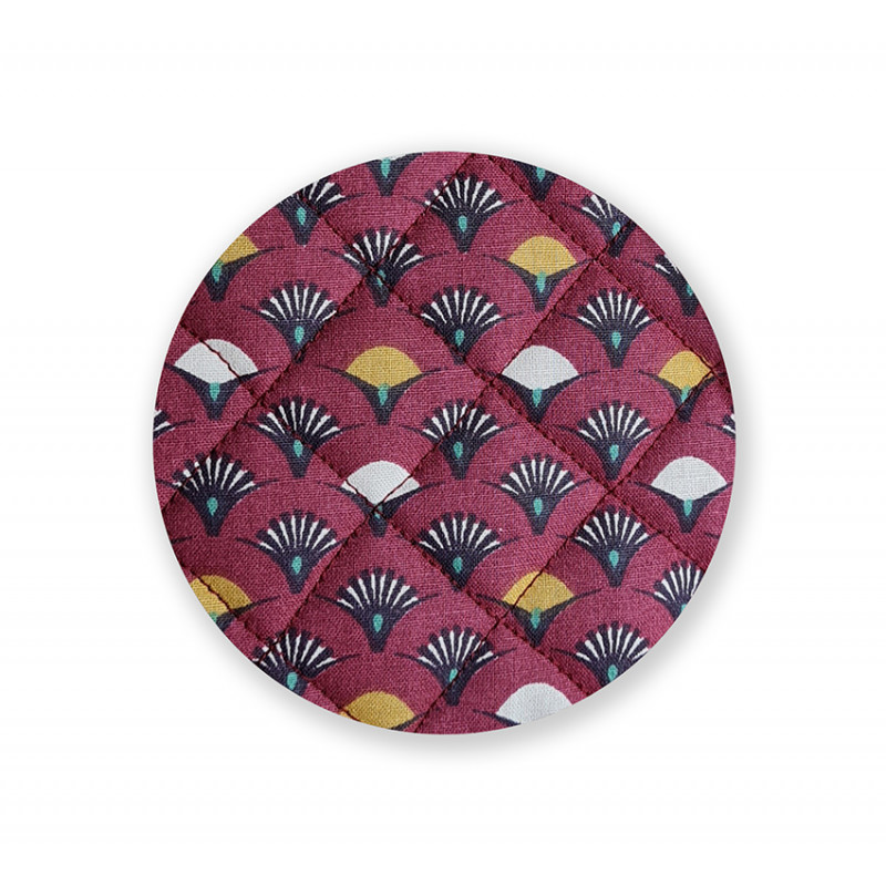 Fait en tissu matelassé, motif éventail bordeaux extérieur et blanc intérieur